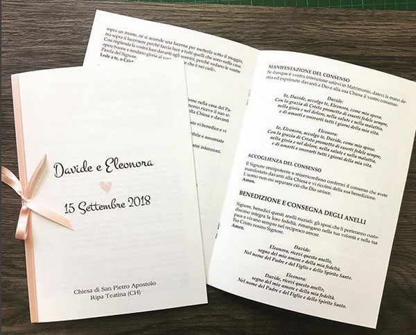 Daniela, ad esempio, ha scelto (giustamente!) di coordinare anche i libretti al resto della wedding suite, e anche il prete ne era contento 🙂