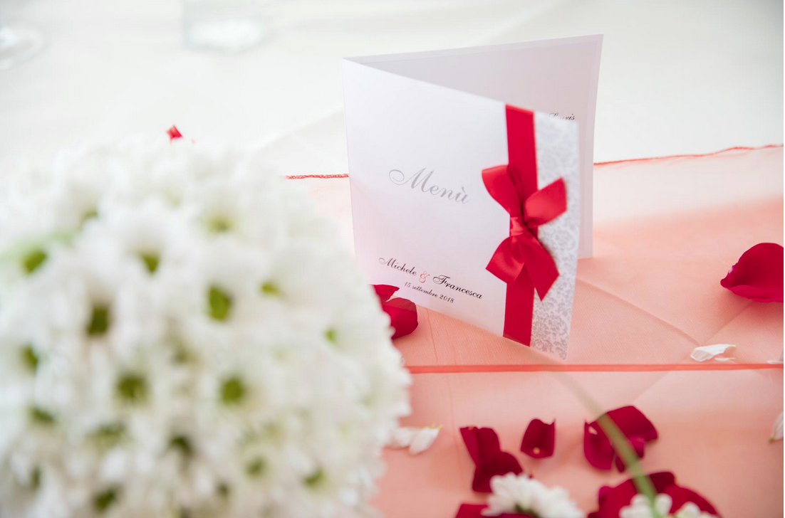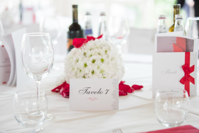 In realtà, il tema scelto per il matrimonio può anche essere un colore, non solo una tematizzazione originalissima e molto ricercata come abbiamo visto in altri real weddings. E’ stato questo il caso di Michele e Francesca, che hanno scelto il rosso e l’hanno ripreso benissimo in tutto, dalle partecipazioni alle bomboniere, dai segnatavolo al tableau. Il risultato è stato una wedding suite elegante e semplice, di forte impatto, e soprattutto perfettamente in linea con gli sposi.