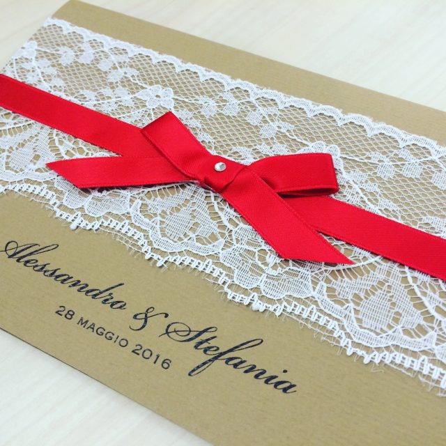 Anche il carattere può essere utilizzato per evidenziare i nomi degli sposi e la data del matrimonio: un’ottima soluzione può essere quella di utilizzare un corsivo per questi elementi e un carattere più lineare per il resto della partecipazione. Utilizzare il corsivo per l’intera partecipazione, a meno che non si tratti di un corsivo abbastanza sobrio e lineare, è sconsigliabile perchè può creare dei problemi di leggibilità e l’ora e il luogo della cerimonia devono essere assolutamente chiari a tutti. La differenza di colore e/o di carattere va ripresa anche nell’invito al pranzo, utilizzando lo stesso carattere e colore dei nomi degli sposi e della data per il nome della Location, che sarà l’elemento di spicco nel cartoncino di invito.