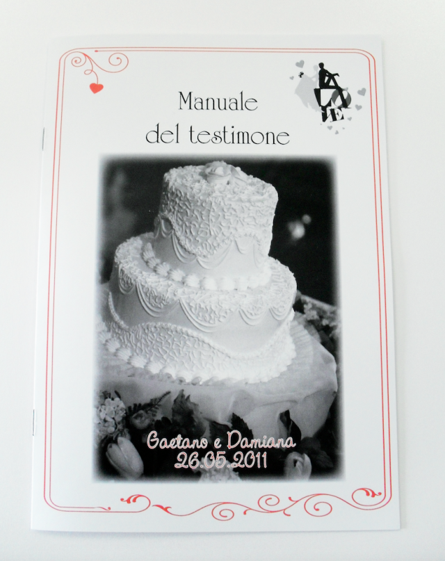 Alcune spose mi hanno chiesto di realizzare anche “varianti” del Manuale del Testimone, indirizzati a damigelle, paggetti, suocera, amica del cuore e chi più ne ha, più ne metta: il mio consiglio in questo caso è non strafare, ed evitare di regalare libriccini pieni di simpatici consigli a chi – vedi la damigella di sette anni… – avrebbe decisamente preferito ricevere qualcos’altro.