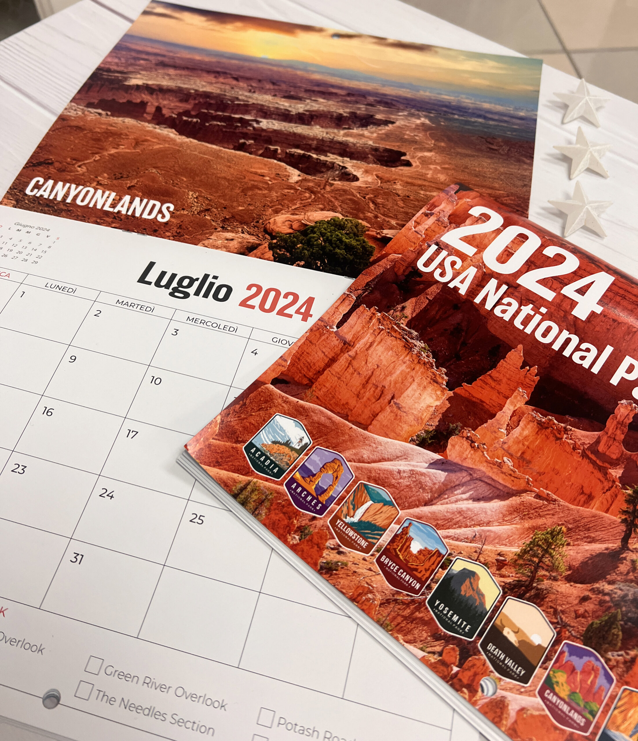 Completamente personalizzato, in aperto 43x28cm, in bellissima carta perlata luxury, con rilegatura a punto metallico e buchino per appenderlo.