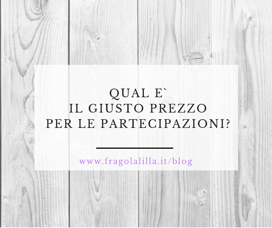 Capirai perciò che dare un prezzo giusto a tutto questo è molto difficile. Questo non significa che, visto che sono realizzate da dei professionisti, le partecipazioni debbano costare come l’oro (come vedo succedere spesso):
