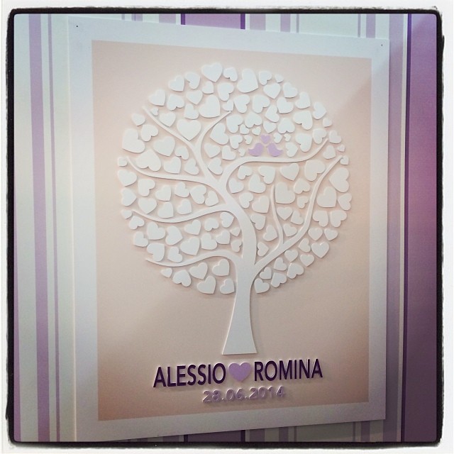 Ho pensato a lungo a come inaugurare questa rubrica, e pensare alla fiera di Udine Sposa – a cui abbiamo partecipato anche quest’anno con il nostro lillosissimo e shabbyssimo stand – ha portato consiglio. Una delle novità che abbiamo infatti presentato in fiera – e che ha riscosso davvero un enorme successo – è stato il PANNELLO GUESTBOOK fatto ad albero tridimensionale: un pannello in forex con un albero a rilievo formato da tantissimi cuoricini, su cui ogni invitato può apporre la propria firma. I due uccellini colorati sul ramo, poi, possono essere riempiti con le firme dei due sposi.
